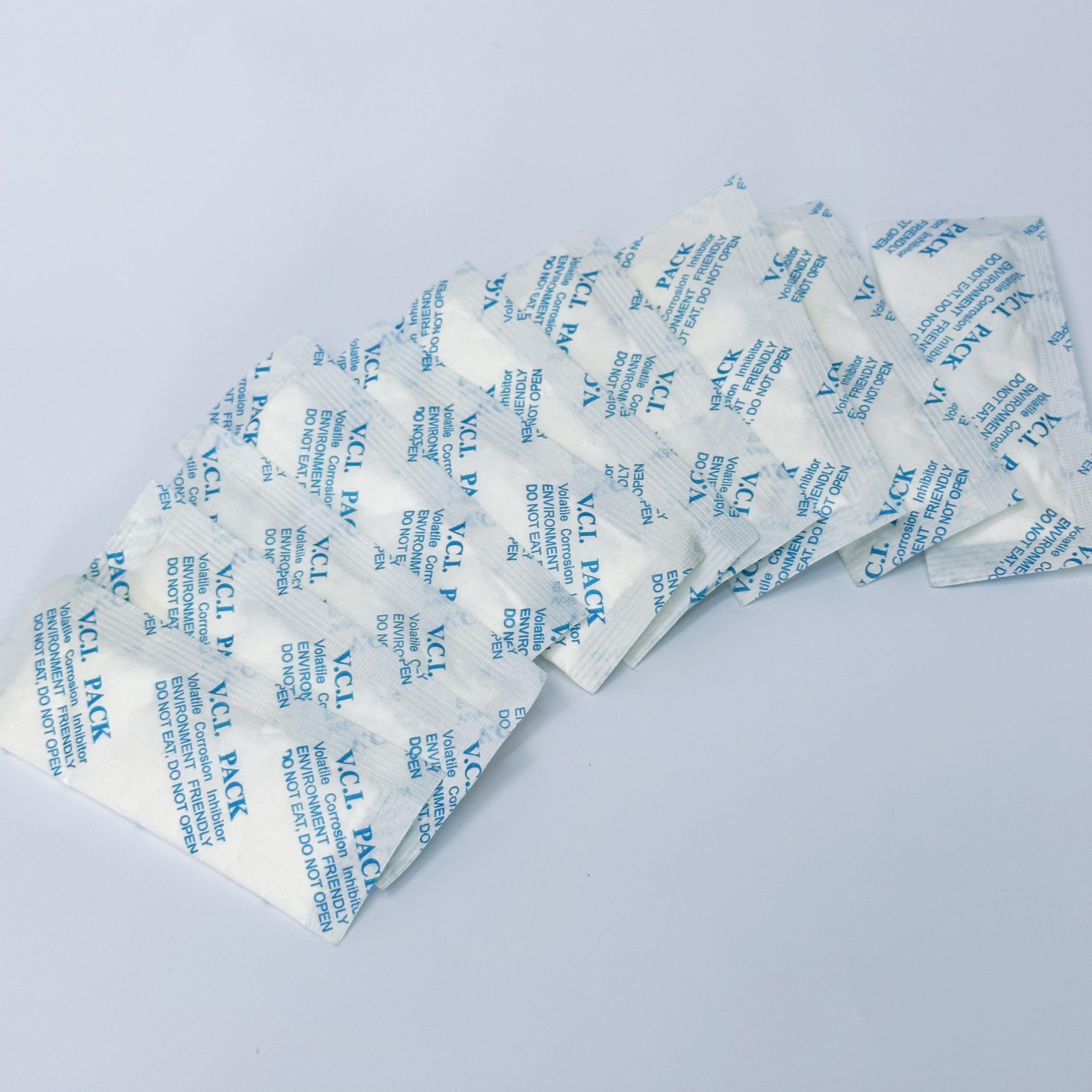 VCI气化性防锈产品在应用于包装之后,自动释放出VCI防锈粒子,在金属表面形成一分子厚的保护膜,阻止电流从阳极流向阴极,从而遏止腐蚀反应的发生,同时防锈粒子与内部的氧分子和水分子相互结合,限制他们的自由活动,产生互锁功能,达到防锈目的。